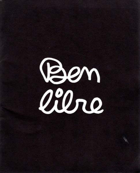 Vautier, Ben: Ben libre. Musee d´art et d´industrie, mai – juin 1981. Premiere edition. Saint-Etienne. Musee d´art et d´industrie. 1981. 26 x 21 cm. 42 S., 1 Blatt. Schwarzer OKarton mit weißer Typographie. Kanten twas berieben. Gutes Exemplar. Durchgehend mit Abbildungen versehen. Text in Französisch.