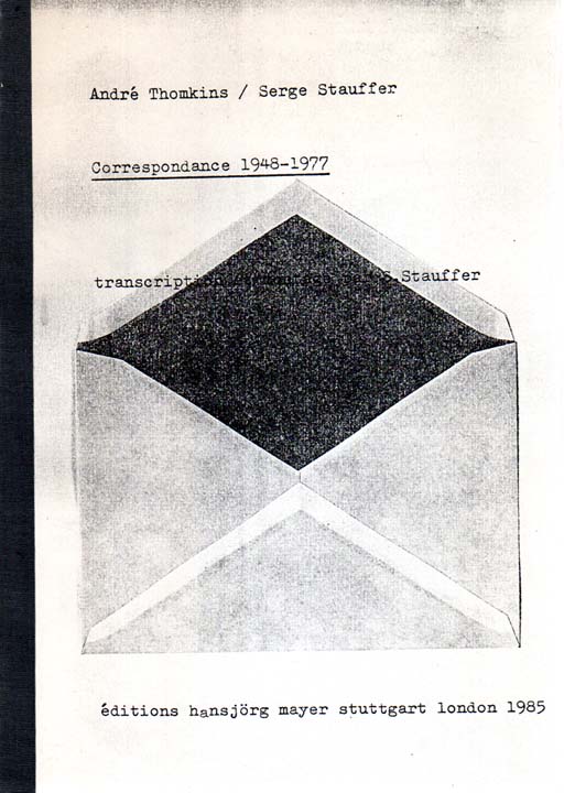 Thomkins, Andre [und] Serge Stauffer: Correspondance 1948-1977. transcription et montage par S. Stauffer. 1. Auflage. London. Edition Hansjörg Mayer. 1985. 30 x 21 cm. 440 xerografierte S. OKarton, Rücken mit Leinenstreifen (Softcover). Gutes bis sehr gutes Exemplar. Künstlerbuch. Texte in Französisch oder Deutsch.