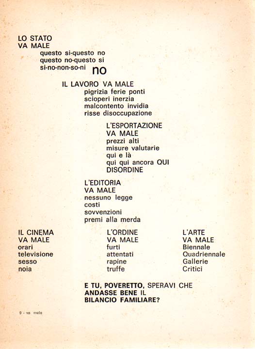 Benedetto, Enzo: CONTROVENTO. PAROLE IN LIBERTA’. Auflage: 500 nummerierte Exemplare. Roma. Edizioni arte-viva. 24 lose Blatt. OKarton-Mappe. Einige Blätter minimal stockig sowie an der oberen linken Kante leicht gestaucht, sonst gutes Exemplar. QUADERNI DI FUTURISMO-OGGI n. 16. Enthält insgesamt 24 lose Blätter, davon 22 paginiert und mit Textarbeiten, 1 Blatt mit Inhaltsverzeichnis, 1 Blatt mit einer montierten Illustration. Texte in Italienisch. No. 38 von 500 nummerierten Exemplaren.