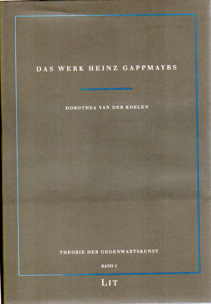 Gappmayr, Heinz – Dorothea van der Koelen: DAS WERK HEINZ GAPPMAYRS. Darstellung und Analyse. [Zugl.: Mainz, Univ., Diss., 1992]. 1. Auflage. Münster und Hamburg. Lit Verlag. 1994. 24 x 17 cm. 352 S. OLeinen mit OUmschlag. Umschlag am Rücken etwas nachgedunkelt, sonst sehr gutes Exemplar. THEORIE DER GEGENWARTSKUNST ; Band 1. Mit ganzseitigen Abbildungen in Schwarz-Weiß.