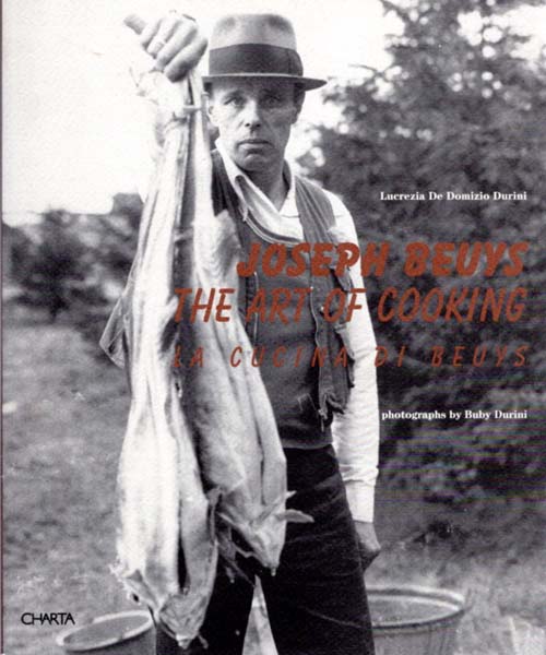 Beuys, Joseph – De Domizio Durini, Lucrezia: Joseph Beuys. The art of cooking. La cucina di Beuys. 1. Auflage. Mailand. Charta, 1999. 29 x 24 cm. 205 S. Illustrierter OKarton. Sehr gutes Exemplar. Durchgehend mit schwarz-weißen Abbildungen versehen. „In 1943 the Luftwaffe pilot Joseph Beuys, shot down by Russian anti-aircraft, crashed right into the middle of a snowstorm. The artist was found wounded near the wreckage of his Stuka ’‚…I remember some voices saying voda (water), then the felt of their tents and the pungent odor of the cheese, the fat and the milk. They covered my body with fat in order to help it regenerate and wrapped it in felt to keep it warm…‘‚ This was the origin of the almost physical relationship that Beuys was to maintain throughout his life with basic elements. Beuys was the first to make use of food: fat, wine, oil, tea, lemon, honey, sugar, spices, chocolate. The author, thanks to first-hand experiences, inserts some unusual and often unpublished photos by Buby Durini, drawing on two historic discussions ‘‚Fondazione per la Rinascita dell‘‚Agricoltura‘‚ (Pescara 1978) and ‘‚Difesa della Nature‘‚ (Bolognano, 1984). She does not intend to catalog Beuys in the ‘‚Eat-Art‘’ movement and has collected conversations and recipes by the artist-philosopher who was the first to perceive that humanity was condemning itself to suffering the dramatic effects of the ecological crisis. His dream was the symbiotic coexistence between Nature and Man which is still to be realized.“ (Verlagsinfo).