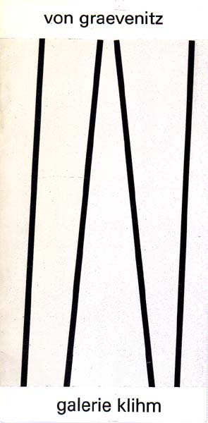 Graevenitz, Gerhard von: Kinetische Objekte. Galerie Klihm München. 15.2.-30.3.77. 1. Auflage. München. Galerie Klihm. 1977. 21 x 10,5 cm. 16 unpaginierte S. OBroschur. Einband nachgedunkelt und leicht berieben, sonst gutes Exemplar. Erschienen anlässlich der Ausstellung der Galerie Klihm in München vom 15. Februar – 30. März 1977. Mit 21 schwarz-weiß Abbildungen versehen.