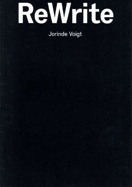 Voigt, Jorinde: ReWrite. Erste Auflage. Bremen. KraskaEckstein. 2008. 67 S. Illustrierter, flexibler OKarton. Sehr gutes Exemplar. Durchgehend mit schwarz-weißen Abbildungen versehen. Katalog zur gleichnamigen Ausstellung, vom 29. März bis zum 12. April 2008, in der Galerie Fahnemann, Fahnemann Projects, Berlin. Jorinde Voigt (* 19. Januar 1977 in Frankfurt am Main) ist eine deutsche Künstlerin, die mit den Medien Zeichnung, Schrift, Malerei und Installation arbeitet. Sie war von 2014 bis 2019 Professorin für konzeptuelle Zeichnung und Malerei an der Akademie der Bildenden Künste München. Seit 2019 ist sie Professorin an der Hochschule für bildende Künste Hamburg (Wikipedia).