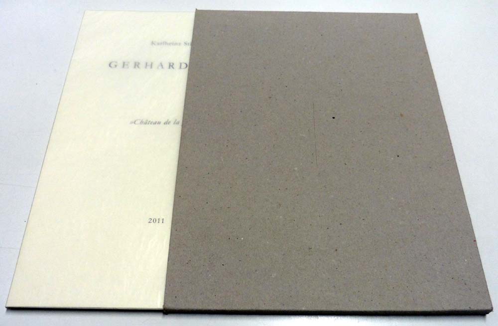 Merz, Gerhard – Karlheinz Stierle: „Chateau de la purete“. [Erscheint anläßlich der Ausstellung „Chateau de la purete“, Ausstellungsraum Celine und Heiner Bastian, Berlin-Mitte, 16. April-30. Juli 2011]. Erste Auflage. Düsseldorf. Richter Verlag. 2011. 32 x 25 cm. 7 lose Bögen und 5 lose Tafeln. OKarton mit OPergamin-Umschlag. Sehr gutes, frisches Exemplar. Künstlerbuch. Dabei ein Folder für den Ausstellungsraum Celine und Heiner Bastian mit einer Abbildungstafel und 3 geklammerten Blättern Text von Gerhard Merz.
