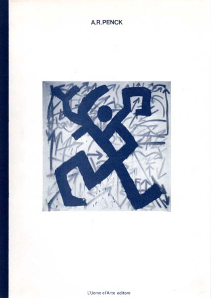Penck, A. R. (d. i. Ralf Winkler): Standart. Introduzione descrittiva I. Standart. Introduzione descrittiva II. Standart. Deskriptive Einführung 1. Standart. Deskriptive Einführung 2. Erste Auflage. Mailand. L’Uomo e l’Arte editore. 1973. 29,7 x 21 cm. 162 S. Illustrierter, flexibler OKarton mit Klebebindung. Einband minimalst angestaubt. Innen durchgehend papierbedingt lichtrandig. Sonst gutes Exemplar. Durchgehend mit graublauen Texttafeln und schematischen Zeichnungen in Abbildung versehen. Italienische Übertragung der Arbeit „Standart. Deskriptive Einführung 1“ und, ab Seite 90, „Standard. Deskriptive Einführung 2“. Die italienischen Texte jeweils auf leichtem Durchschlagpapier den originalsprachlichen Textseiten vorgebunden. Um 1970 begegnet in Pencks streng systematisierter Bildsprache häufig das Motiv der suggestiv monumentalisierten Strichfigur. Dieses Sujet ist das Ergebnis der Suche nach einem archaischen Vokabular und lehnt sich bewusst an die Bildzeichen des Neolithikums an. Der von Penck entsprechend geprägte Begriff „Standart“ bezeichnet ein Bild von so einfacher Struktur, dass jeder Betrachter es zu durchdringen vermag. In der Komposition markiert die magische Strichgestalt die Grenze einer geteilten Welt und kann als Anspielung auf die besondere Lebenssituation des Künstlers verstanden werden, der bis 1980 in Dresden arbeitete, jedoch nur im Westen ausstellen durfte (Info Homepage Staatsgalerie Stuttgart zu „Standart“).