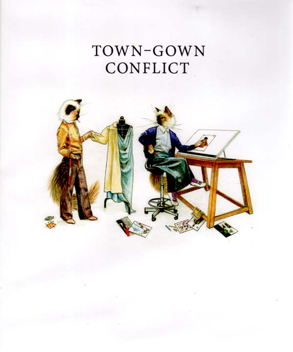 TOWN-GOWN CONFLICT. [on the occasion of the Exhibition Town-Gown Conflict, Verena Dengler, Lucile Desamory, Caitlin Keogh, Pelican Avenue, Beca Lipscombe, Lucy McKenzie, Elizabeth Radcliffe, Kunsthalle Zürich, 13.6.-14.8.2011]. 1. Auflage. Zürich. JRP Ringier. 2013. 26 x 21 cm. 112 S. OPappband mit OUmschlag. Neuwertiges Exemplar (OVerschweißt). Texte in Deutsch und Englisch. Enthält 43 Farbabbildungen.