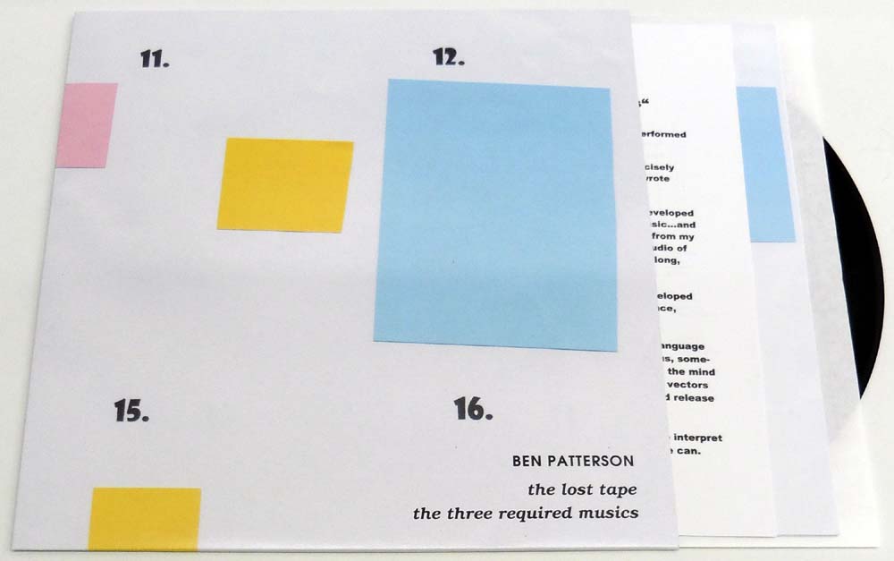 Patterson, Ben: the lost tape & the three required musics. by and with Ben Patterson. radiophoni minutes of the search for a probably lost tape piece, and a reconstruction thereof with real instruments. [Schallplatte / Vinyl Record]. [Berlin]. Edition Telemark. 2018. 31,5 x 31,5 cm. OVinyl. OTextblatt. OFaltplakat. OKarton-Cover. Sehr gutes Exemplar (Near Mint). Edition Telemark – 785.06. Inklusive Textblatt und Faltplaket.