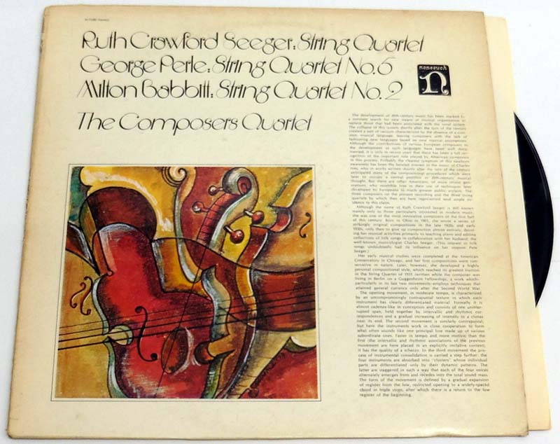 Crawford Seeger, Ruth / George Perle / Milton Babbitt: The Composers Quartet – String Quartet / String Quartet No. 5 / String Quartet No. 2. [Schallplatte / Vinyl Record]. New York. Nonesuch Records. 1973. 31,5 x 31,5 cm. OSchallplatte. OKarton-Cover. Cover nachgedunkelt und an den Kanten etwas berieben, kleiner Besitzaufkleber am Backcover (Good), Schallplatte in gutem Zustand (Very Good). Ordentliches Exemplar. Nonesuch – H-71280.