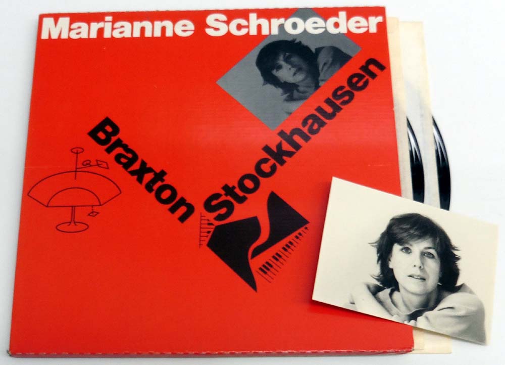 Schroeder, Marianne: Braxton & Stockhausen. [Schallplatte / Vinyl Record]. New York. hat ART. 1984. 31,5 x 31,5 cm. 2 OSchallplatten. OPostkarte. OPapp-Schuber. Cover minimal berieben und leicht angestaubt (Very Good+), Schallplatten in sehr gutem Zustand (Near Mint). Insgesamt gutes bis sehr gutes Exemplar. hat ART – 2030.