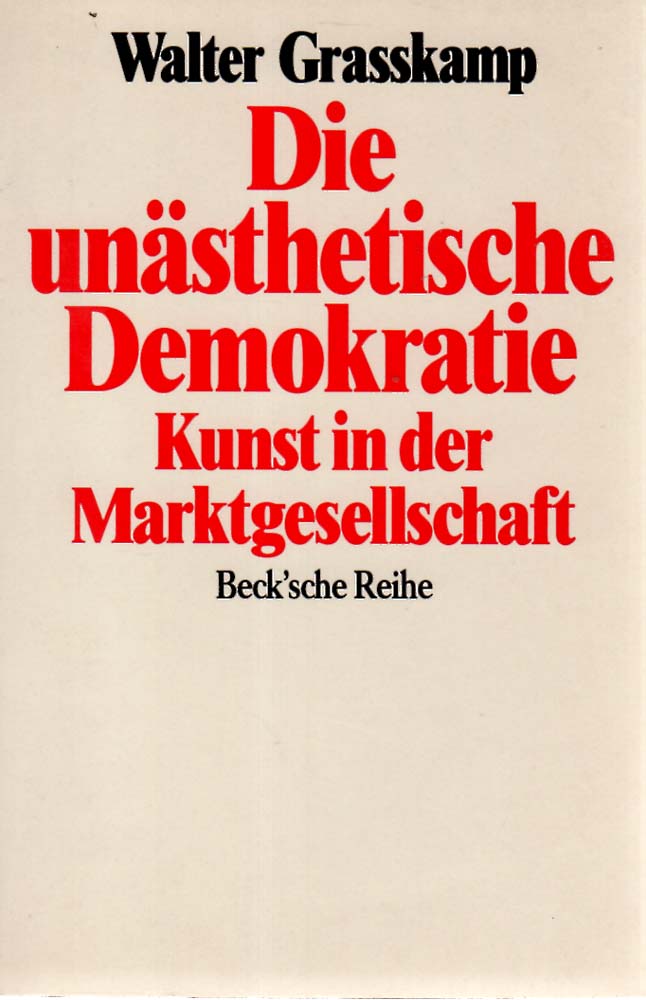 Grasskamp, Walter: Die unästhetische Demokratie. Kunst in der Marktgesellschaft. 1. Auflage. München. Verlag C. H. Beck. 1992. 18 x 12 cm. 169 S. OKarton. Gutes Exemplar. Beck`sche Reihe ; BsR 475.