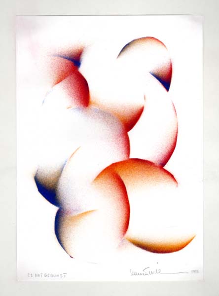 Williams, Emmett: ES HAT GEBUMST. o. O. o. V. 1986. 29,7 x 21 cm (Blattmaß). 1 Blatt. Geringfügig am linken oberen Bildrand angestaubt, sonst guter Zustand. Original-Farbserigrafie des amerikanischen Künstlers und Dichters Emmett Williams (1925 – 2007). Vom Künstler unterhalb des Bildmotivs in Bleistift betitelt, signiert und datiert. Der Druck ist nicht nummeriert. Ein Geschenk des Künstlers an eine deutsche Sammlerfamilie.