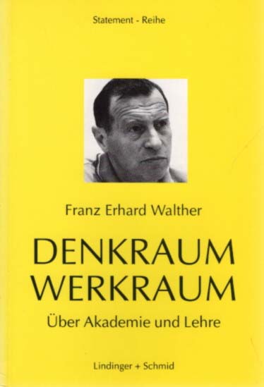 Walther, Franz Erhard: Denkraum – Werkraum. Über Akademie und Lehre. Erste Auflage. Regensburg. Lindinger und Schmid. 1993. 101 S. Illustrierter, glanzkaschierter OKartonband. Einband minimalst angestaubt, Rücken etwas aufgehellt, sonst gutes Exemplar. Statement-Reihe, S 3. Durchgehend mit schwarz-weiß Abbildungen versehen. Texte in deutscher Sprache.
