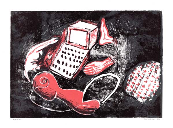 Bonvie, Rudolf: Ohne Titel. Köln. Edition Hundertmark. 1986. 20,8 x 29,7 cm auf 25,4 x 34,5 cm. 1 Blatt. Verso geringer Abklatsch des Motives, sonst sehr gutes Exemplar. Farbserigrafie des deutschen Künstlers und Illustrators Rudolf Bonvie (*1947) auf glattem Karton, vom Künstler in Bleistift unterhalb des Bildmotives signiert, datiert und nummeriert. Teil des 100. Karton der Kölner Edition Hundertmark aus dem Jahre 1986. Aus einer Auflage von 100 Exemplaren, hier Nr. 37/100.