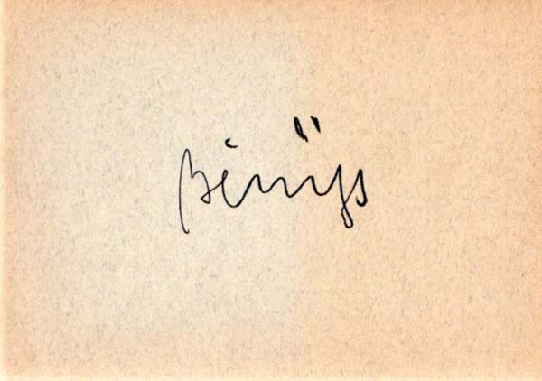 Beuys, Joseph: Handzeichnungen. Herzog Anton Ulrich-Museum Braunschweig. Ausstellung des Kupferstichkabinetts 11. Dezember 1970 bis 31. Januar 1971. Erste Auflage. Braunschweig. Herzog Anton-Ulrich Museum. 1970. 14,8 x 21 cm. [16] unpaginierte S. Illustrierter OKarton. Einband nachgedunkelt und lichtspurig. Sonst gutes Exemplar. Durchgehend mit schwarz-weißen und wenigen farbigen Abbildungen versehen.Katalog zur gleichnamigen Ausstellung des Künstlers im Herzog Anton-Ulrich Museum in Braunschweig, vom 11. Dezember 1970 bis zum 31. Januar 1971. Texte von Christian von Heusinger, Hans van der Grinten und Franz Josef van der Grinten.