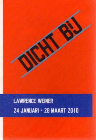 Weiner, Lawrence: DICHT BIJ. 24 Januari – 28 Maart 2010. Erste Auflage. Utrecht. BAK basis voor actuele kunst. 2010. 16,5 x 10,5 cm. 44 S. Illustrierter OKarton. Gutes bis sehr gutes Exemplar. Durchgehend mit schwarz-weißen bzw. einfarbigen Abbildungen versehen. Katalog zur gleichnamigen Ausstellung Weiners im BAK in Utrecht, vom 23. Januar bis zum 28. März 2010. Texte in englischer und niederländischer Sprache.