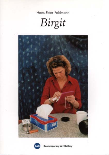 Feldmann, Hans-Peter: Birgit. Erste Auflage. Köln. Verlag der Buchhandlung Walther König. 2006. 24,1 x 17,2 cm. [38] unpaginierte Blätter; [6] unpaginierte Blätter (Beilage). OKarton mit illustriertem OKlappenumschlag / OBroschur. Gutes bis sehr gutes Exemplar. Durchgehend mit meist farbigen Abbildungen versehen. Beiheft mit einem Text von Roy Arden in englischer Sprache. Gleichzeitig Katalog zu einer Einzelausstellung des deutschen Konzeptkünstlers und Fotografen Hans-Peter Feldmann in der Contemporary Art Galllery in Vancouver (Kanada) im Juni 2006.