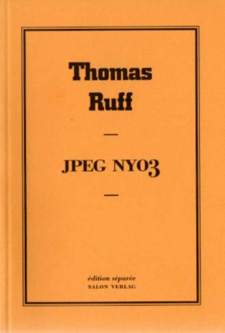 Ruff, Thomas – Reiner Speck / Gerhard Theewen (Herausgeber): JPEG NY03. Erste Auflage. Köln. Salon-Verlag. 2005. 16,8 x 11,6 cm. [17] unpaginierte Blätter. OKarton. Sehr gutes, neuwertiges Exemplar. édition séparée, 36. Künstlerbuch von Thomas Ruff, durchgehend bestehend aus farbigen Abbildungen. Behandelt wurde das Thema 9/11. Eines von 1000 Exemplaren.