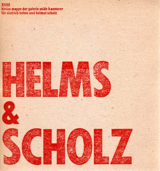Helms, Dietrich / Scholz, Helmut: Helms & Scholz. XVIII. kleine mappe der galerie seide hannover für dietrich helms und helmut scholz. Erste Auflage. Hannover. Galerie Seide. [1961]. 23,5 x 22 cm. [9]; [3]; [10]; [3] unpaginierte S. Klammergeheftete OBroschuren in typographisch gestaltetem OKlappkarton. Karton nachgedunkelt, lichtrandig und angestaubt. Blätter innen nachgedunkelt, fleckig und angestaubt. Sonst ordentliches Exemplar. Durchgehend mit schwarz-weißen Abbildungen versehen. Zu jedem Künstler liegen jeweils drei schwarzweiße Zinklithografien vor.