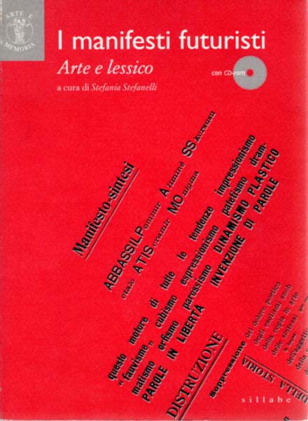 Stefanelli, Stefania (Herausgeberin): Manifesti futuristi. Arte e lessico. Erste Auflage. Livorno. Sillabe. 2001. 23 x 17 cm. 119 S.; 1 CD-ROM. Illustrierter OKlappkarton. Einband etwas berieben und leicht angestaubt. Sonst noch gutes Exemplar. Arte e memoria, 5. Durchgehend mit schwarz-weißen Abbildungen versehen. Texte in italienischer Sprache. Beiliegend eine CD-ROM.