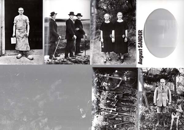 Sander, August: Fotografie August Sander (1876 – 1964). 1. Bauernmädchen (Westerwald, 1928). 2. Jungbauern auf dem Weg zum Tanz (Westerwald, 1914). 3. Lackierer (Köln, 1932). 4. Junglehrer (Westerwald, 1928). 5. Bauernkapelle (Westerwald, 1913). Erste Auflage. Antwerpen / Köln. Foto + Film Centrum vzw (ICC) / Album-Fotogalerie. o. J. 15,6 x 11 cm. [5] unpaginierte Blätter (Postkarten) OPappumschlag mit ovaler Ausstanzung recto. Guter bis sehr guter Zustand. Kleines Konvolut von fünf schwarzweißen, glanzkaschierten Postkarten mit Abbildungen nach Aufnahmen von August Sander in einem kleinen Pappumschlag.