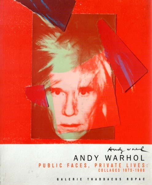 Warhol, Andy – Maria L. Gärtner (Herausgeberin): Public faces, private lives: collages 1975 – 1986. Galerie Thaddaeus Ropac. Erste Auflage. Paris. Galerie Thaddaeus Ropac. 2002. 29 x 24 cm. 127 S. Illustrierter OKlappkarton. Gutes bis sehr gutes Exemplar. Durchgehend mit meist farbigen Abbildungen versehen. Katalog zur gleichnamigen Ausstellung in der Pariser Dependance der Galerie Thaddaeus Ropac, vom 12. Oktober bis zum 16. November 2002. Texte in englischer und französischer Sprache.