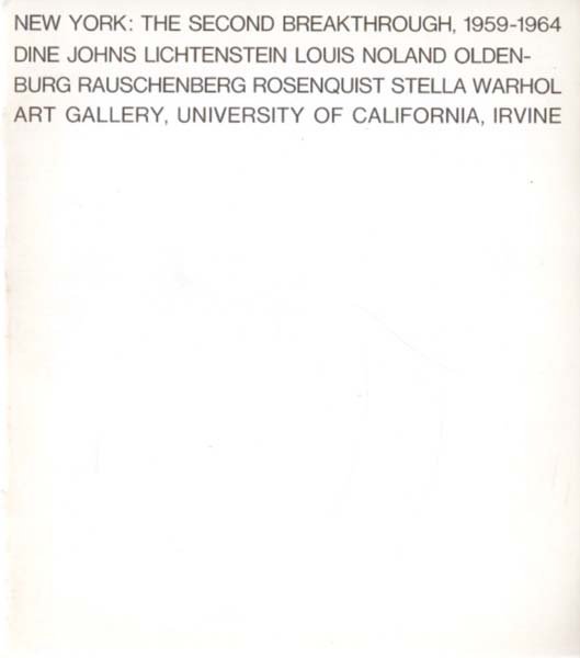 (Warhol, Andy): New York: The Second Breakthrough, 1959-1964. Dine – Johns – Lichtenstein – Louis – Noland – Oldenburg – Rauschenberg – Rosenquist – Stella – Warhol. Art Gallery, University of California, Irvine. Erste Auflage. Irvine (CA). University of California. 1969. 24,2 x 21,3 cm. 31 S. Klammergehefteter OKarton. Einband etwas nachgedunkelt und lichtrandig. Sonst gutes Exemplar. Durchgehend mit schwarz-weißen und farbigen Abbildungen versehen. Texte in englischer Sprache. Katalog zur gleichnamigen Gruppenausstellung in der Art Gallery der University of Califonia, Irvine, vom 18. März bis zum 27. April 1969.