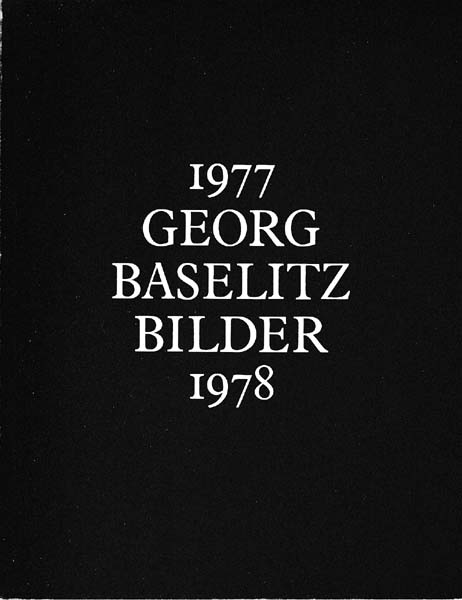 Baselitz, Georg: Bilder 1977 – 1978. Van Abbemuseum Eindhoven. Erste Auflage. Eindhoven. Van Abbemuseum. 1979. 27 x 21 cm. IV S., 26 Tafeln, 1 Blatt. OKarton. Einband lichtspurig, leicht angestaubt und berieben. Stempel auf Vortitel und Deckel innen verso. Sonst noch gutes Exemplar. Durchgehend mit Abbildungen versehen, meist auf Klapptafeln. Mit einem Text von R. H. Fuchs in Deutsch und Englisch. Auflage 1000.