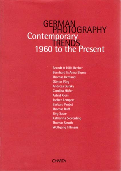 Steinweig, Marcus / Cortese, Sabina (Herausgeber): Fotografia nell’arte tedesca contemporanea. Bernd & Hilla Becher – Bernhard & Anna Blume – Thomas Demand – Günter Förg – Andreas Gursky – Candida Höfer – Astrid Klein – Jochen Lempert – Barbara Probest – Thomas Ruff – Jörg Sasse – Katharina Sieverding – Thomas Struth – Wolfgang Tillmans. Erste Auflage. Milano. CHARTA. 1996. 24 x 17 cm. 45 S. Illustrierter OKarton mit OUmschlag. Umschlag minimalst berieben. Sonst noch sehr gutes Exemplar. Durchgehend mit meist farbigen Abbildungen versehen. Katalog zur gleichnamigen Ausstellung bei Claudia Gian Ferrari Arte Contemporanea, Mailand, vom 19. September bis zum 9. November 1996; Modena, Foro Boario, vom 24. November 1996 bis zum 9. Februar 1997. Texte von Marcus Steinweg in englischer und italienischer Sprache.