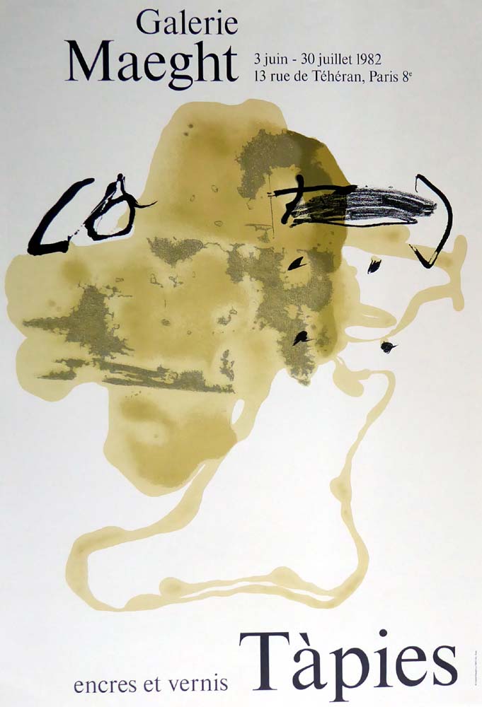 Tapies, Antonio: encres et vernis. [Plakat / Poster] Galerie Maeght, Paris, 3 juin-30 juillet 1982. Paris. Galerie Maeght. 1982. 87,5 x 60 cm. Gutes bis sehr gutes Exemplar. Offset-Lithographie.