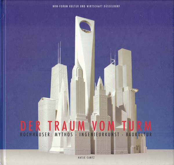 Der Traum vom Turm. Hochhäuser: Mythos – Ingenieurkunst – Baukultur. Eine Ausstellung des NRW-Forum Kultur und Wirtschaft Düsseldorf, 6. November 2004 bis 20. Februar 2005. 1. Auflage. Ostfildern-Ruit. Hatje Cantz Verlag. 2004. 22 x 23 cm. 272 S. Illustrierter OPappband. Verlagsfrisches, neuwertiges Exemplar – originalverschweißt. Der Wohn- und Arbeitsturm in jedweder denkbaren Form in Entwicklung und Ausführung steht im Fokus der Ausstellung mit zahlreichen Abbildungen von geplanten oder ausgeführten Hochhäusern und auch Türmen (des Mittelalters).