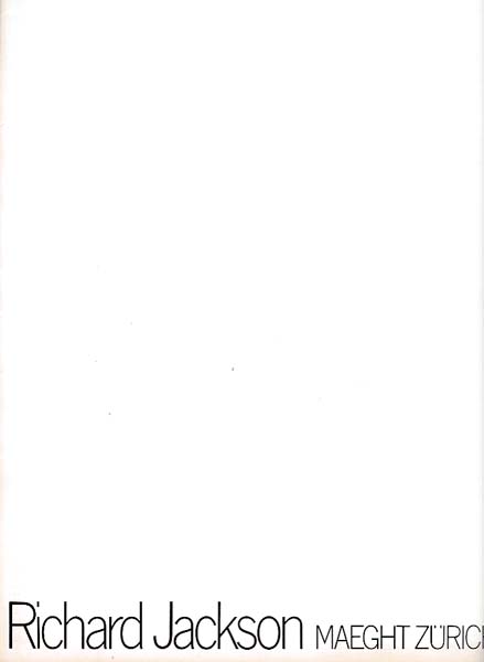 Jackson, Richard: Richard Jackson. Erste Auflage. Zürich. Galerie Maeght. 1979. 32 x 23 cm. 20 unpaginierte lose S. + Beilage 2 Blatt. OKartonmappe. Einband etwas lichtrandig und mit kleinen Bereibungen. Sonst gutes Exemplar. Katalog zur Ausstellung Zürich 1979 durchgehend mit Abbildungen – zum Teil auf Pergaminpapier- und Texten von Thomas Deeecke und Ed Lienholz versehen. Inliegend Beilage Equipo cronica, Cartons aus der Serie Stadtlandschaften, versehen.
