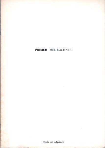 Bochner, Mel: Primer. The Complete Catalog of Twenty-One Demonstrations from a Theory of Sculpture: (Counting). Tiraturta 2000 copies. Milano. flash art edizioni. 1973. 23,4 x 16,4 cm. 52 unpaginierte S. OKarton. Umschlag etwas nachgedunkelt, ein winziges Fleckchen verso, sonst noch sehr gutes Exemplar. Enthält 21 Tafeln mit schematischen Zeichnungen. [Vgl. Lailach. Printed Matter – Die Sammlung Marzona, 2005, S. 96].