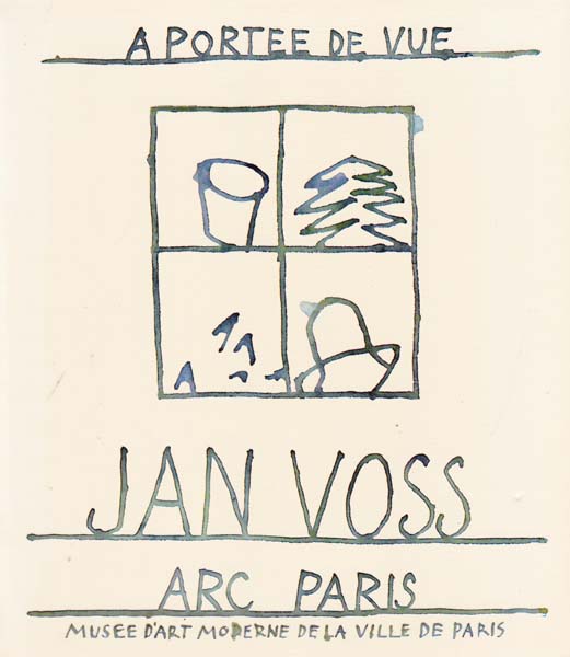 Voss, Jan: A portee de vue. Erste Auflage. âris. ARC Paris/ Musee d’art moderne de la ville de Paris. 1978. 22 x 19 cm. 62 S., 1 Blatt. OKarton. Einbandkanten mit kleinen Bereibungen, etwas angestaubt. Gutes Exemplar. Katalog zur Ausstellung Paris 27. September bis 12. November 1978 durchgehend mit Abbildungen, Ausstellungsverzeichnis sowie Bio- und Bibliographie versehen. Text in französischer Sprache.