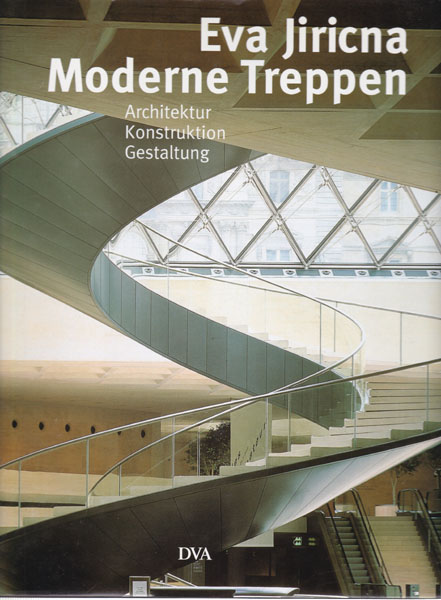 Jiricna, Eva: Moderne Treppen. Architektur Gestaltung Konstruktion. Erste Auflage. Stuttgart/ München. Deutsche Verlags-Anstalt. 1991. 29,5 x 24,5 cm. 192 unpaginierte S. OPappband mit illustriertem OUmschlag. Umschlagkanten mit kleinen Bereibungen, privater Aufkleber auf dem vorderen Vorsatzblatt. Gutes Exemplar. Durchgehend mit überwiegend ganzseitigen Abbildungen versehen.