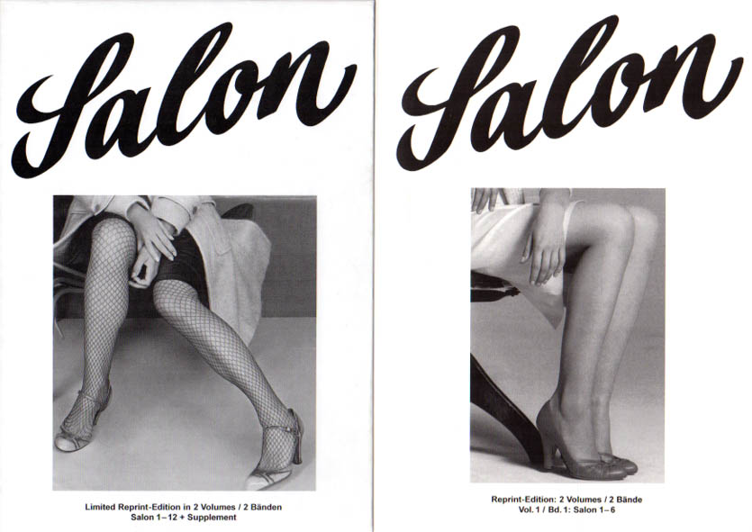 Theewen, Gerhard [Herausgeber]: Salon. Ein Magazin mit Originalbeiträgen zeitgenössischer Künstler. A magazine with original contributions by contemporary artists. Limited Reprint – Edition in 2 Volumes / 2 Bänden. Salon 1 – 12 + Supplement. Auflage: 200 Exemplare. 2 Bände im Schuber. Köln. Salon Verlag. 2008. 21 x 15 cm. 1020 unpaginierte S. Illustrierter OKarton im illustierten OPappschuber. Sehr gutes Exemplar. Es handelt sich hier um die Version B – Salon 1-12 komplett. Im Innendeckel des Schubers ein montiertes Etikett ″ A.P. Salon G.Th.“. Durchgehend mit ca. 1.000 schwarz-weiß Abbildungen versehen. Texte in Deutsch und Englisch. Die Bildmotive für alle Umschläge – auch für die Umschläge der beiden Reprint-Bände und den Schmuckschuber – wurden von Hans-Peter Feldmann ausgewählt. Alle 12 erschienenen Hefte aus den Jahren 1977 – 1993. Sämtliche Künstlerbeiträge wurden speziell für dieses legendäre Magazin gemacht (u.a. Hans Peter Adamski, Walter Dahn, Robert Barry, Lawrence Weiner, Jochen Gerz, Giulio Paolini, Mimmo Paladino, Hans-Peter Feldmann, Chris Burden, Antonius Höckelmann, Yuji Takeoka, Reinhard Mucha, Markus Oehlen, Helmut Federle, Matin Disler, David Askevold, Robert Winnewisser, Didier Bay, Bernhard Johannes Blume, Ernesto Tataoire).