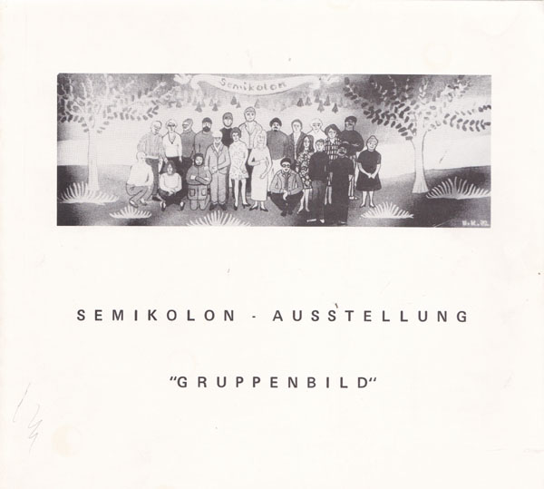 Semikolon-Ausstelung „Gruppenbild“. Erste Auflage. Bonn-Bad Godesberg. Haus an der Redoute. 1976. 19 x 21 cm. 30 unpaginierte S. Illustrierte OBroschur. Einbandkanten etwas nachgedunkelt und mit kleinen Bereibungen. Sonst gutes Exemplar. Katalog zur Ausstellung Bonn 16. April bis 9. Mai 1976 durchgehend mit s/w-Abbildungen versehen.