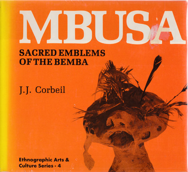 Corbeil, J.J.: MBUSA. Sacred Emblems Of The Bemba. Erste aAflage. Mbala/ Zambia. London. Moto-Moto Museum. Ethnographica Publ. 1982. 20 x 22,5 cm. 118 S. OPappband mit illustriertem OUmschlag und Cellophanumschlag.. Umschlagkanten aufgehellt und mit Bereibungen, Cellophanumschlag stellenweise festgeklebt, etwas angestaubt. Sonst noch gutes Exemplar. Ethographic Arts & Culture Series 4. Durchgehend mit schwarz-weissen Abbildungen versehen. Text in englischer Sprache.