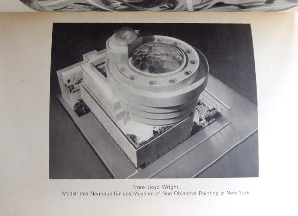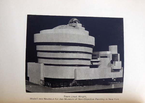 Gegenstandslose Malerei in Amerika. Solomon R. Guggenheim Foundation New York. Erste Auflage. Baden-Baden. Woldemar Klein Verlag. 1948. 19 x 14,5 cm. 24 S. Text, 7 Blatt Abbildungen. Illustrierter OKarton. Einbandkanten papierbedingt etwas nachgedunkelt und berieben, kleiner Stempel auf dem Vortitel „Die Kunstrunde München im Hertie-Haus“. Gutes Exemplar. Früher Katalog (1948!) der Solomon R. Guggenheim Foundation New York zur abstrakten Malerei in Amerika mit schwarz-weissen Werkabbildungen von Rudolf Bauer, Ilja Bolotowski, Donald Coale, Emmet Edwards, Perle Fine, Alice T. Mason, Alice Louise Mattern, Wallace Mitchell, Laszlo Moholy-Nagy, Lloyd Ney, Hilla Rebay, Samuel Reichmann-Lewis, Rolph Scarlett, Charles Smith,Robert Jay Wolff und Jean Xceron sowie entsprechendem Abbildungsverzeichnis versehen. Zusätzlich beinhaltet der Katalog noch 4 Entwurfszeichnungen von Frank Lloyd Wright zum geplanten Neubau des berühmten, im Jahr 1959 eröffneten „Gugggenheim-Museums“, hier noch als „Museum of Non-Obejective Painting“ betitelt. Mit Texten von Kurt Martin, der Direktorin und Künstlerin Hilla Rebay und W. Wartmann. Mit handschriftlichem Namenszug sowie Datierung eines ehemaligen Direktors der Kunstakademie Düsseldorf auf dem Vortitel.