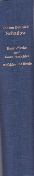 Schadow, Johann Gottfried: Kunst-Werke und Kunst-Ansichten 1849. Aufsätze und Briefe, 2. Aufl. 1890. Eingeleitet und mit einem Register versehen von Helmut Börsch-Supan. Berlin. Verlag Richard Seitz & Co. 1980. 21,5 x 15,5 cm. 376 S., 1 Blatt, 8 S., 25 Blatt, V S., 172 S., 43 Blatt Register. OLeinen. Schnitt und Blattränder papierbedingt etwas nachgedunkelt, insgesamt leicht angestaubt. Gutes Exemplar. Nachdruck der Ausgaben Berlin 1849 und Stuttgart 1890.
