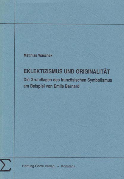 Waschek, Matthias: Eklektizismus und Originalität. Die Grundlagen des französischen Symbiolismus am Beispiel von Emile Bernard. Erste Auflage. Konstanz. Hartung-Gorre Verlag. 1990. 20,5 x 14,5 cm. 311 S. OKarton. Einbandkanten mit kleine Bereibungen, Rücken etwas aufgehellt. Gutes Exemplar Inaugural-Dissertation der Rheinischen Friedrich-Wilhelms Universität 1990 mit schwarz-weissem Abbildungsteil!