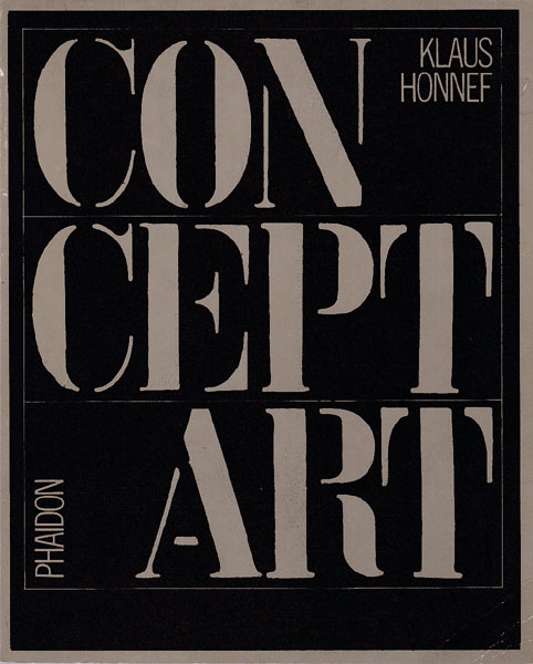 Honnef, Klaus: Concept Art. Köln. Phaidon Verlag. 1971. 21 x 17 cm. 192 S. 1 Faltkarte. OKarton. Einbandkanten mit Bereibungen, stellenweise minimal beschabt, Vorderdeckel mit kleiner Knickfalte. Sonst gutes Exemplar. Mit Beiträgen zu und Arbeiten von Daniel Buren, Sol Lewitt, Ian Wilson, On Kawara, Hanne Darboven, Gilbert & George u.a. mit zahlreichen Abbildungen.