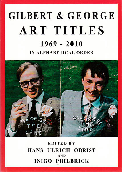 Gilbert & George – Hans Ulrich Obrist/ Ingo Philbrick [Herausgeber] : Gilbert & George. Art Titles 1969 – 2010 in alphabetical order. Erste Auflage. Köln. Verlag der Buchhandlung Walther König. 2011. 21 x 15 cm. 180 S. Illustrierter OKarton. Sehr gutes Exemplar. Kompletter Katalog von Ausstellungen, Bildern, Büchern, Skulpturen und anderen Formaten aus mehr als 40 Jahren des künstlerischen Schaffens. Der Band besteht aus 2 Teilen zu je 90 S., über Kopf gedruckt und von den Künstlern selbst entworfen. Text in englischer Sprache.