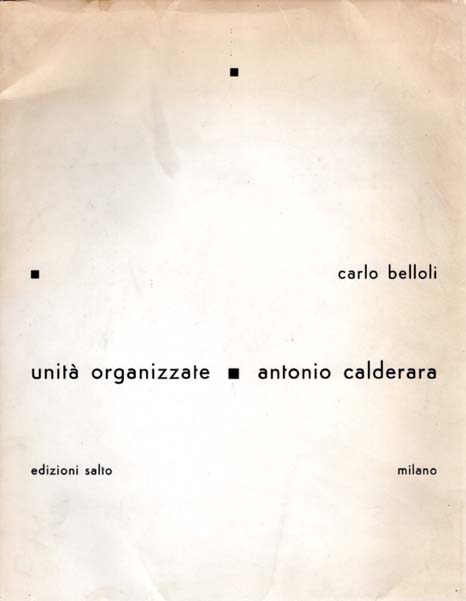 Calderara, Antonio – Carlo Belloli: Unita organizzate. De Carlo Belloli. Milano. Edizioni Salto. 1961. 34 x 27 cm. 44 unpaginierte S. Fransösiche Broschur / OKarton mit eingeschlagenem OUmschlag. Der Umschlag in den Rändern stärker gebräunt, etwas angestaubt bzw. fingerfleckig. Innen sehr gutes, insgesamt ordentliches Exemplar. Frühe werkmonographsiche Publikation über Calderara mit einem Text von Carlo Belloli in Italienisch, Französisch, Deutsch und Englisch. Mit 9 ganzseitigen, fotolitographischen Tafeln von Arbeiten Calderaras aus den Jahren 1960 und 1961.