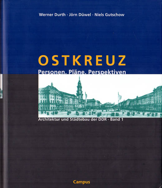 Durth, Werner / Jörn Düwel / Niels Gutschow: Architektur und Städtebau der DDR. Band 1: Ostkreuz. Personen, Pläne, Perspektiven / Band 2: Aufbau. Städte, Themen, Dokumente. Mit Fotos von Stanislaw Klimek. 1. Auflage. 2 Bände. Frankfurt am Main / New York. Campus Verlag. 1998. 30,5 x 25,5 cm. 567 S.(Band 1); 560 S. (Band 2). Illustrierte OPappbände mit illustriertem OUmschlag im Schuber. Fußschnitte jeweils mit Mängelexemplar-Stempelung. Schuberam unteren Steg angeplatzt, teils berieben. Minimale Stauchung an der vorderen unteren Stoßkante von Band 1. Sonst gute Exemplare. Architektur und Städtebau der DDR Durchgehend mit Abbildungen versehen. Mit Beilagen (Zeitungsausschnitte). Standardwerk zur Architekturgeschichte der DDR.