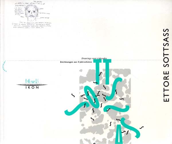 Sottsass, Ettore: Drawings over 4 decades. Zeichnungen aus 4 Jahrzehnten. Erste Auflage. Frankfurt am Main. Ikon-Galerie für Designzeichnungen. 1990. 24 x 28,5 cm. 83 S. Illustrierter OKarton. Einband lichtschattig und wenig berieben, sonst gutes Exemplar. Durchgehend mit meist farbigen Abbildungen versehen. Katalog zur gleichnamigen Ausstellung in Frankfurt, Ikon Galerie für Designzeichnungen vom 16.06. bis zum 22.08.1990. Ettore Sottsass jr. (* 14. September 1917 in Innsbruck; † 31. Dezember 2007 in Mailand) war ein italienischer Architekt und Designer von Einrichtungsgegenständen, die er vorwiegend in der von ihm stark geprägten Stilrichtung des „Anti-Designs“ gestaltete, das ihn international bekannt und erfolgreich machte.