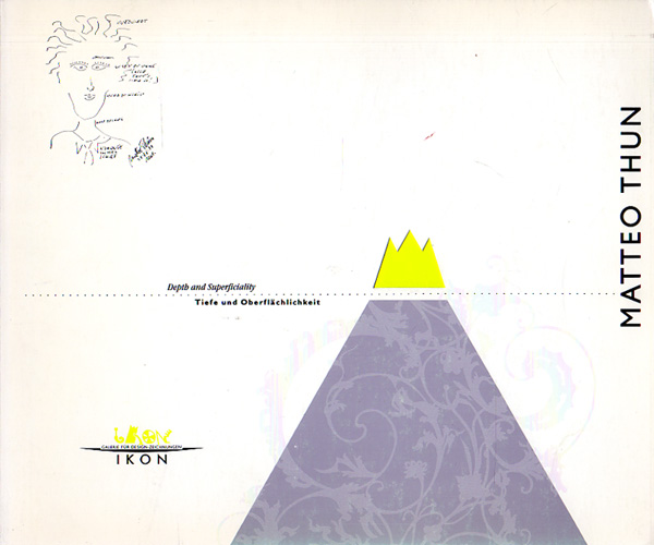 Thun, Matteo: Matteo Thun. Depth and Superficiality. Tiefe und Oberflächlichkeit. 1. Auflage. Frankfurt am Main. IKON, Galerie für Design-Zeichnungen. 1990. 24 x 29 cm. 59 S. Illustrierter OKarton. Etwas angestaubt, nachgedunkelt und leicht berieben, sonst gutes Exemplar. Durchgehend mit meist farbigen Abbildungen versehen. Matteo Thun (* 17. Juni 1952 in Bozen; vollständiger Name Matthäus Antonius Maria Graf von Thun und Hohenstein) ist ein italienischer Architekt und Designer. Der Katalog zeigt zahlreiche Architekturzeichnungen des Bozeners.