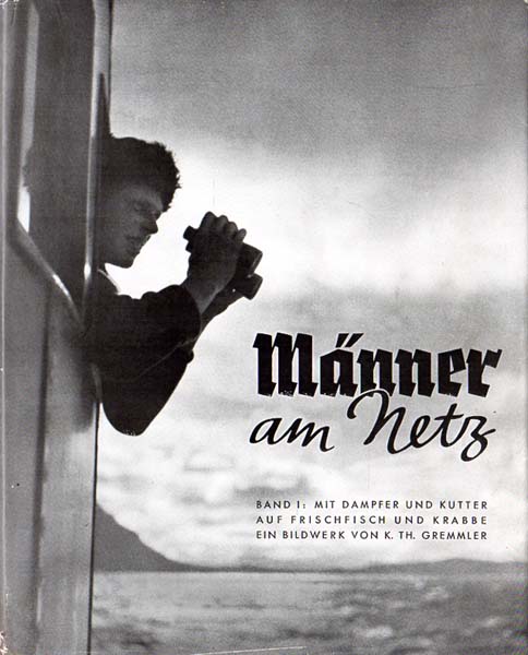 Gremmler, K. Th. – Keune, H. A. (Herausgeber): Männer am Netz. Band I: Mit Dampfer und Kutter auf Frischfisch und Krabbe. Ein Bildwerk von K. Th. Gremmler. Mit zwei Beiträgen von Rud. Kinau, Hamburg-Finkenwärder. Einführende Bildtexte von Prof. Dr. Schnakenbeck, Hamburg. 1. Auflage. Berlin-Lichterfelde. Verlag „Das Fischnetz“. 1939. 28,5 x 22,9 cm. 124 S. OLeinen mit illustriertem OUmschlag. Kleiner Einriß am Schutzumschlag recto unten, Rücken und Fuß des Umschlags etwas fleckig und leicht angestaubt. Präsentstempel und kleiner Schriftzug auf Titel. Vorsätze mit winzigen Stockfleckchen. Sonst sehr gutes und auch frisches Exemplar. Durchgehend mit schwarz-weißen Abbildungen versehen. Der seltene OUmschlag in ungewöhnlich gutem Zustand. Seltenes Werk.