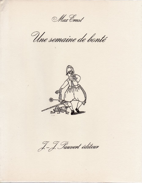Ernst, Max: Une semaine de bonté Ou les sept éléments capitaux Roman. 1. Auflage. Paris. J. J. Pauvert editeur. 1963. 27 x 21,5 cm. 224 unpaginierte S. Illustrierter OKarton mit Cellophanumschlag in OPappschuber. Schuber an den falzen teils leicht angeplatzt. Die letzten drei Blatt mit kleinem Pepierberieb am Steg, sonst sehr gutes Exemplar. Im Rhytmus der Woche angelegtes Collagenwerk, erschienen erstmals in 7 Heften 1934 in Paris [Vgl. Spies / Collagen, S. 367ff]. Erster Nachdruck der Erstausgabe!