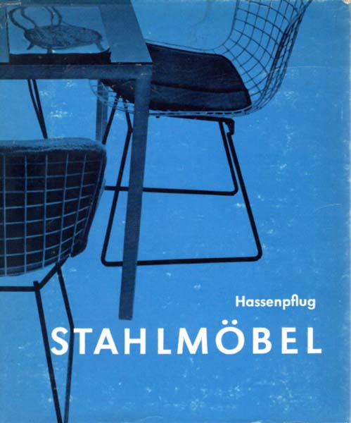 Hassenpflug, Gustav: Stahlmöbel. Herausgegeben von der Beratungsstelle für Stahlverwendung, Düsseldorf. Erste Auflage. Düsseldorf. Verlag Stahleisen. 1960. 25,7 x 21,4 cm. 221 S. 1 Blatt. OLeinen mit illustriertem OUmschlag. Umschlag mit Randläsuren und mit kleinem Einriß recto oben sowie etwas berieben. Rücken etwas lichtspurig und berieben, sonst noch sehr gutes Exemplar. Erstmalige vollständige Übersicht zur Entwicklung der Stahlmöbel von Marcel Breuers Stahlrohrsessel „Wassily“ über weitere Bauhaus Entwürfe von Mies van der Rohe hin zu den Produkten des Alltags am Ende der 50er Jahre. Verzeichnet 402 abgebildete Stühle, Tische, Büromöbel und andere Kleinmöbel. Selten. Beiliegend rin zweifarbiger Werbeprospekt mit der Verlagsankündigung für das Buch sowie ein maschinenschriftliches Anschreiben mit Unterschrift vom Verlag an die Redaktion der Zeitung Handelsblatt mit der Bitte um Buchrezension.