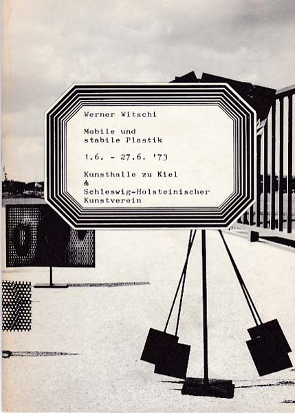 Witschi, Werner: Mobile und stabile Plastik. Erste Auflage. Kiel. Kunsthalle zu Kiel & Schleswig-Holsteinischer Kunstverein. 1973. 21 x 15 cm. 24 unpaginierte S. Illustrierte OBroschur. Rücken und Einbandkanten etwas lichtrandig. Sonst gutes bis sehr gutes Exemplar. Katalog zur Ausstellung Kiel 1. 6. bis 27. 6. 1973. Durchgehend mit Abbildungen versehen.